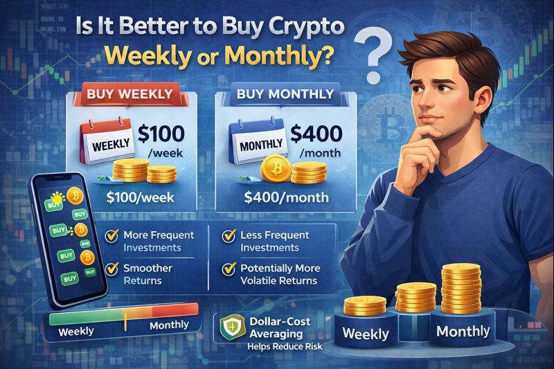 So, is it better to buy crypto weekly or monthly? For most investors, monthly purchases offer the best balance of price averaging, fee efficiency, and convenience. Monthly investing captures sufficient price variation to accomplish dollar cost averaging goals while minimizing transaction costs and time investment.